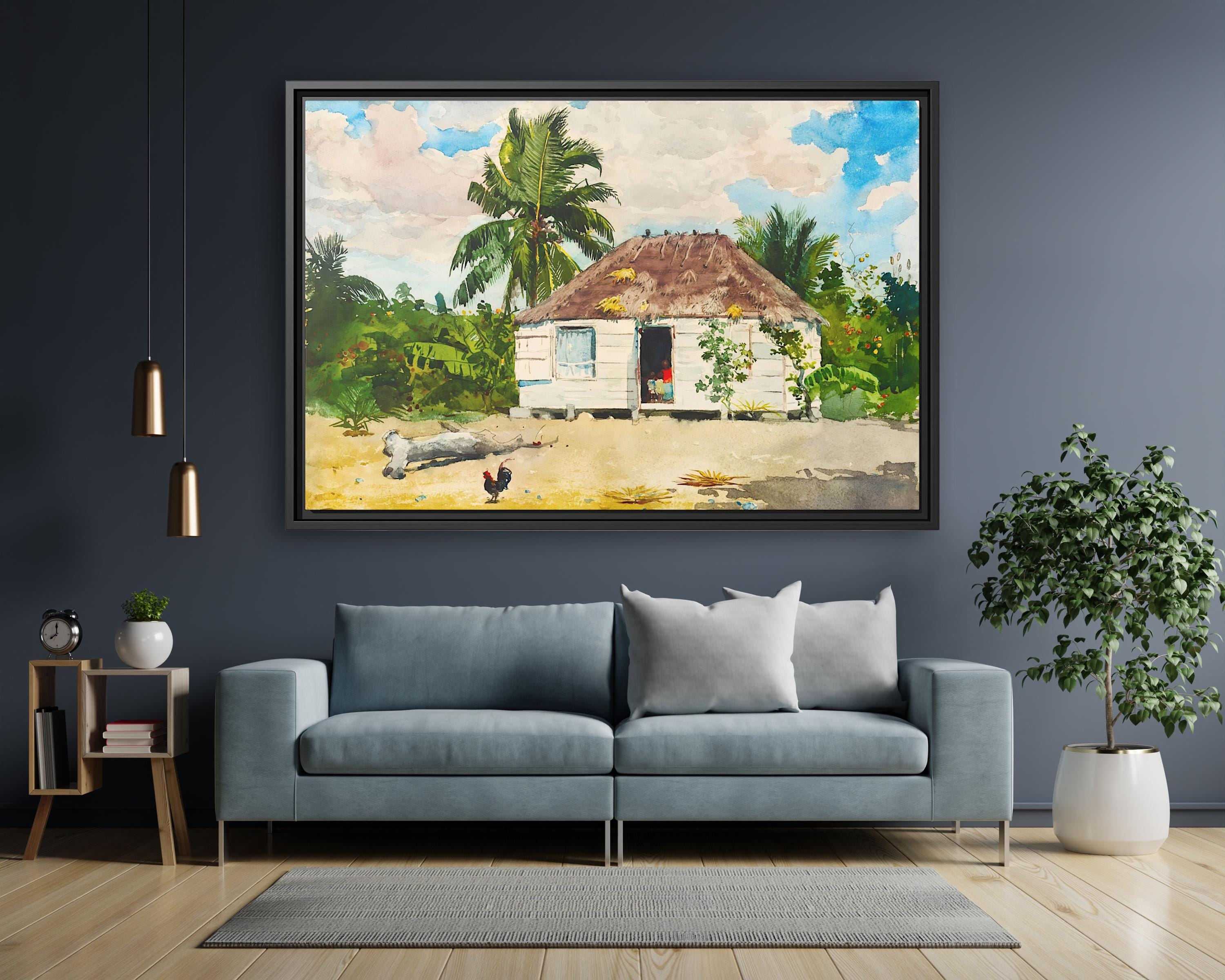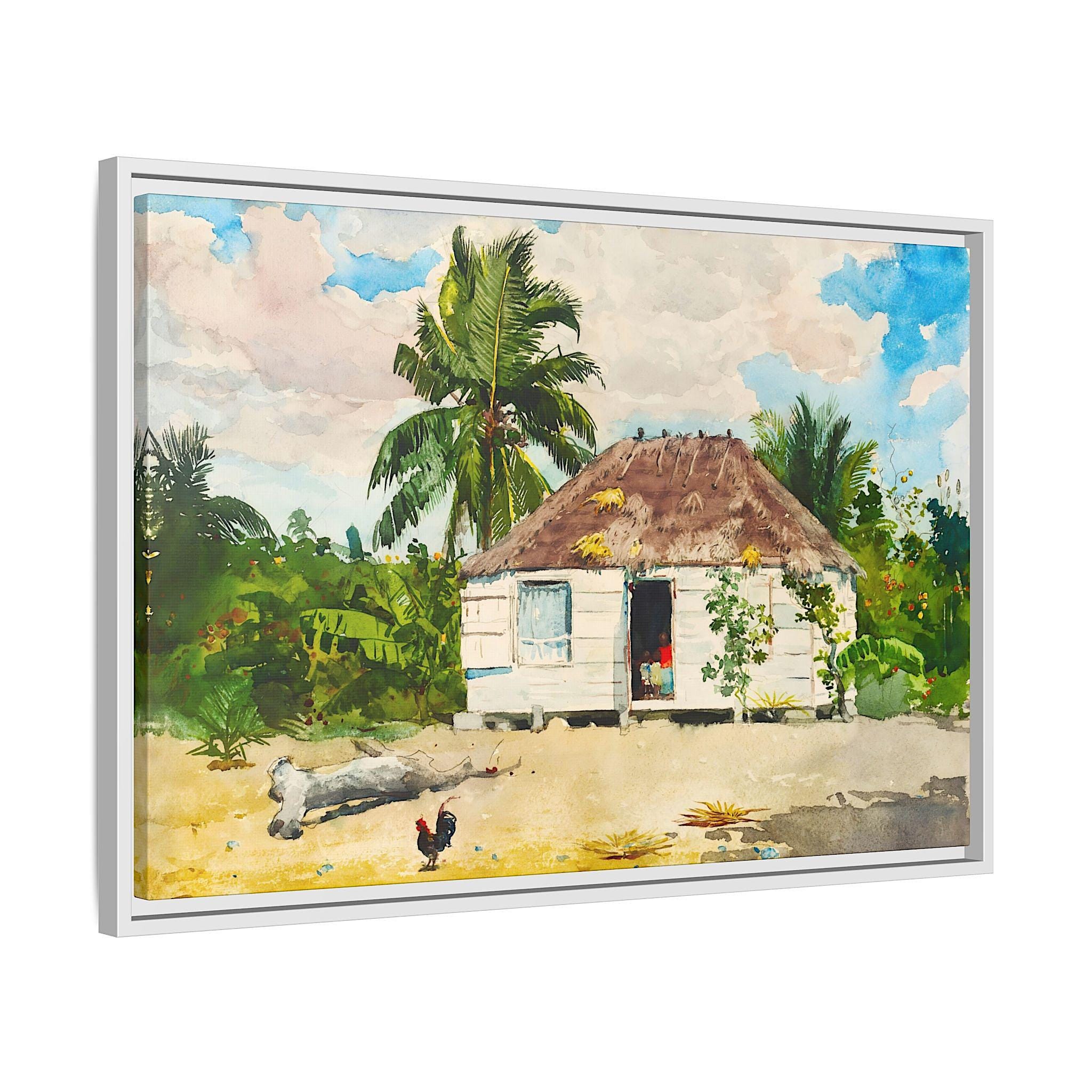 Winslow Homer Native hut at Nassau Winslow Homer Artwork Sea Painting Ocean Wall Art Sea Winslow Homer Painting Sea Canvas Tropical Painting